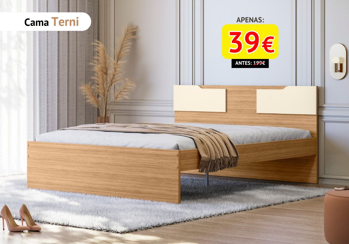 A Cama de Casal Terni possui um design moderno e simples, com estrutura em tom de carvalho e detalhes na cabeceira em tons neutros que são a sua imagem de marca. É a escolha perfeita se pretende uma cama que possa integrar em quartos de qualquer estilo decorativo.